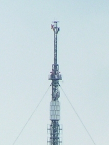 The photo on the left (taken at the beginning of Aug 2007) shows the original UHF cylinder (long, white object) right at the top of the mast, which had been operating since 1973.